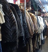 Innerhalb des Hauses gingen wir zuerst in den großen mehrstöckigen „Garderobenschrank“, wo Kleidung nach aufgeführten Stücken, nach Kostbarkeit der Stoffe und verschiedenem Zeitalter hängen. Um alles hier zu finden, gibt es ein Riesencomputerarchiv und einen Plan, wo alles zu finden ist. Da niemand mehr Pelze trägt, haben viele Frauen dem Theater ihre Pelze geschenkt, die dann bei Bedarf als Garderobe umgeändert werden. Viele solch edler Teile hängen dort.